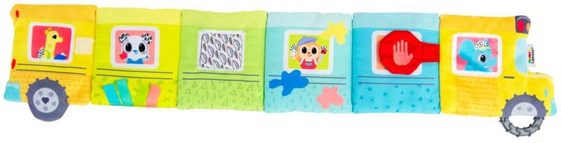 Fabric bus that unfolds like an accordion to reveal colourful illustrations, mirror, teether and squeaking wheels. £12.99 -