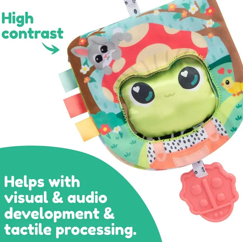 Interactive soft book starring Finlee the frog in different seasonal hats. Each page crinkles and features textures, ribbons and high‑contrast illustrations to develop visual focus and fine motor skills, plus a clip for on‑the‑go storytelling. £8.49 -