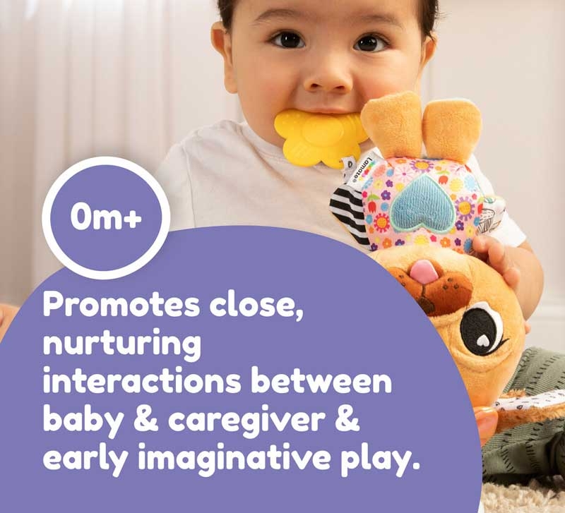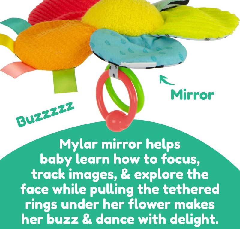 Soft bee plush with vibrant colours, crinkly wings, mirror and vibrating pull handle for tactile fun. £15.99 -