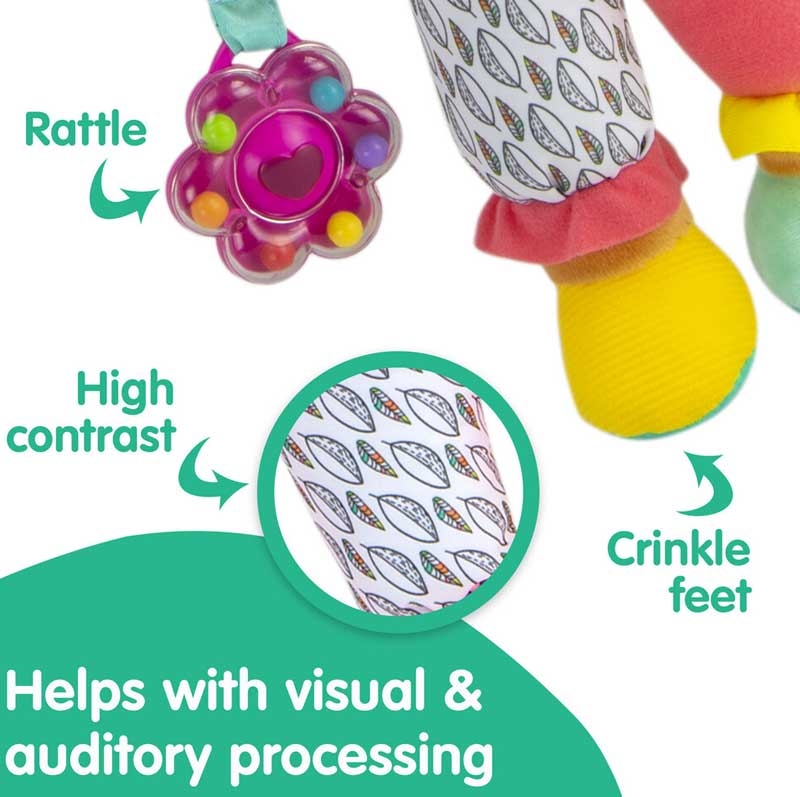 Colourful caterpillar with a bendable body, high‑contrast belly and textured segments that make a gentle chime when moved. £14.99 -