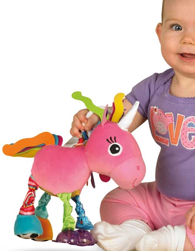 Magical pony friend with sparkling wings, silky mane and clip‑clop hooves that make trotting sounds. Soft fabrics, pastel colours and gentle jingles inspire imaginative stories and tactile exploration wherever you go. £15.99 -