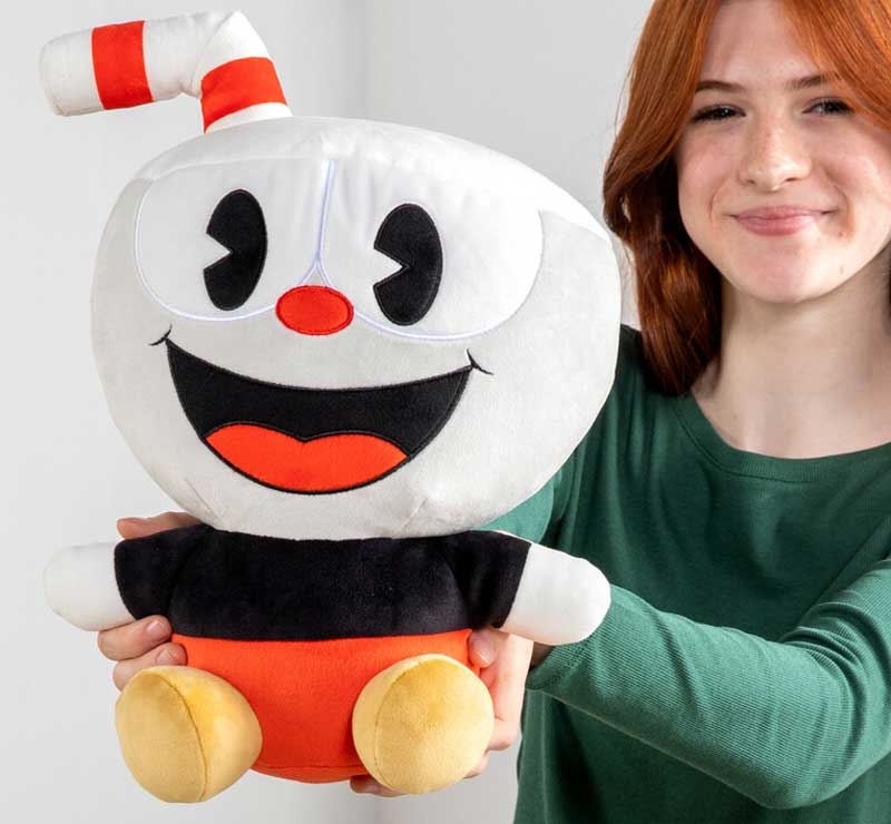 The Cuphead Mega plush brings the retro game hero to life in super‑sized form. Featuring his ceramic head, red shorts and wide grin, this plush is made from exceptionally soft materials with squishy stuffing. Fans of the award‑winning game will love adding this oversized Cuphead to their collection or using him as a quirky cushion.