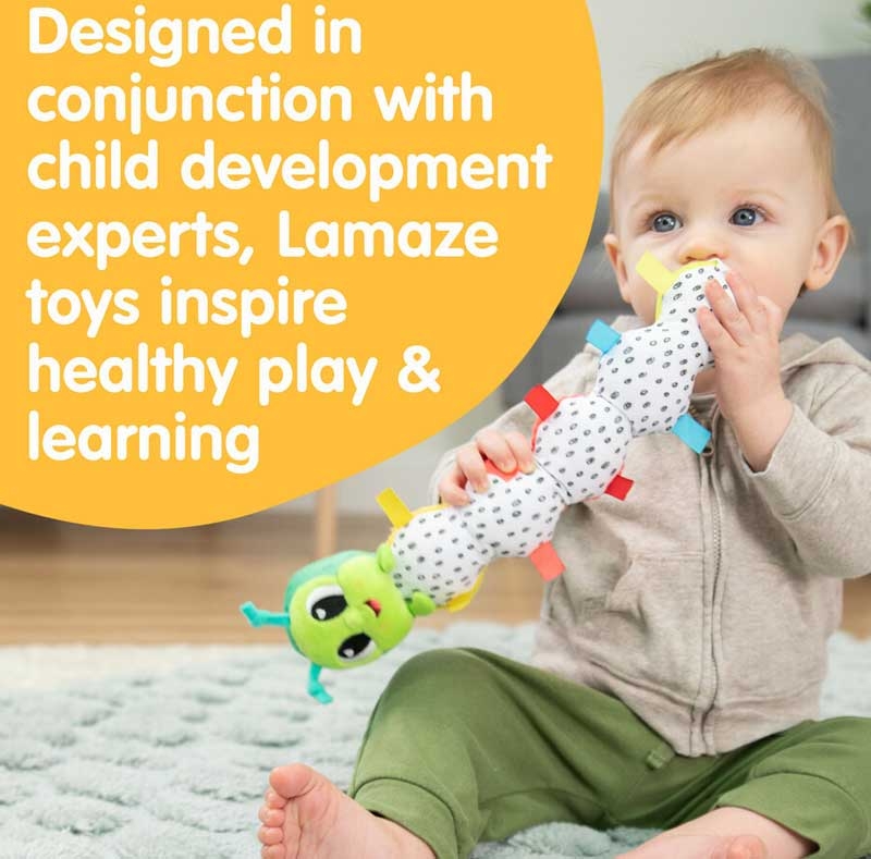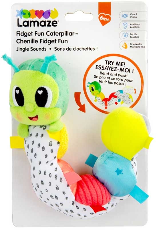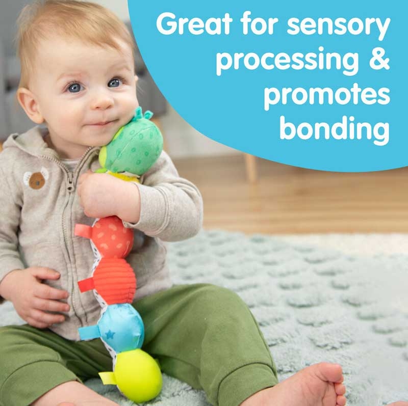 The Fidget Caterpillar captivates little ones with its bendable body and high‑contrast patterns. Each segment features a different texture for tiny fingers to explore, while the built‑in chime and black‑and‑white belly encourage auditory and visual development. Ideal for tummy time or stroller play.